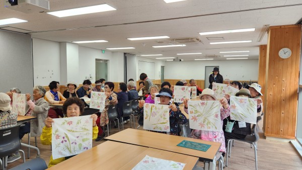 특히 나뭇잎과 꽃잎 등 자연에서 얻은 재료들을 활용해 세상에 단 하나 뿐인 나만의 손수건 물들이기체험은 어르신들에게 특별한 즐거움과 성취감을 선사하며 큰 인기를 끌었습니다.
