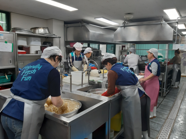 GS슈퍼마켓 (평거점) 페이지 정보 작성자 최고관리자 댓글 0건 조회 1,495회 작성일 20-04-17 10:47 목록 본문 ◆ 매월 첫째주 목요일GS슈퍼마켓 평거동지점 직원들로 구성된 사랑나눔 봉사단으로 어르신들의 쾌적한 생활환경을 위한환경정비, 점심식사 준비를 위한 노력봉사를 해주시고 계십니다. 추천3